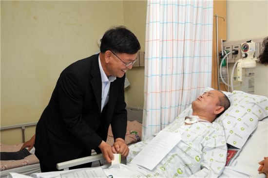 대전시 대덕구 대전보훈병원 찾아 입원 중인 환자들을 위문하고 있는 김남균 산림청 차장.