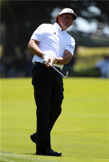 [아시아경제 김현준 골프전문기자] ○…'미국의 자존심' 필 미켈슨(미국)이 16일(한국시간) 미국 샌프란시스코 올림픽골프장(파71ㆍ7170야드)에서 열린 '두번째 메이저' US오픈(총상금 800만 달러) 2라운드 경기 도중 1번홀에서 아이언 샷을 한 뒤 공을 바라보고 있다. 전날 6오버파의 난조로 '컷 오프' 위기에 몰렸던 미켈슨은 이날은 다행히 버디 2개와 보기 3개를 묶어 1오버파를 치는 호조로 공동 51위(7오버파 147타)로 순위를 끌어 올리며 기어코 3라운드 진출에 성공했다. 사진=스튜디오PGA 민수용 제공.김현준 골프전문기자 golfkim@<ⓒ세계를 보는 창 경제를 보는 눈, 아시아경제(www.asiae.co.kr) 무단전재 배포금지>