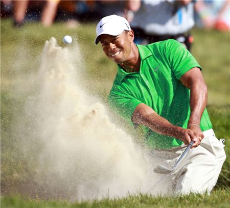 [아시아경제 김현준 골프전문기자] ○…'돌아온 골프황제' 타이거 우즈(미국)가 17일(한국시간) 미국 샌프란시스코 올림픽골프장(파71ㆍ7170야드)에서 열린 112번째 US오픈(총상금 800만 달러) 3라운드 경기 도중 7번홀(파4)에서 벙커 샷을 하고 있다. 우즈는 이날 고비 때마다 공이 벙커로 직행해 어려움을 겪었고, '파 세이브'마저 번번이 실패해 결과적으로 5오버파의 난조를 보였다. 공동 14위(4오버파 214타)로 순위가 뚝 떨어져 역전우승이 쉽지 않은 자리다. 샌프란시스코(美 캘리포니아주)=스튜디오PGA 민수용 제공김현준 골프전문기자 golfkim@<ⓒ세계를 보는 창 경제를 보는 눈, 아시아경제(www.asiae.co.kr) 무단전재 배포금지>