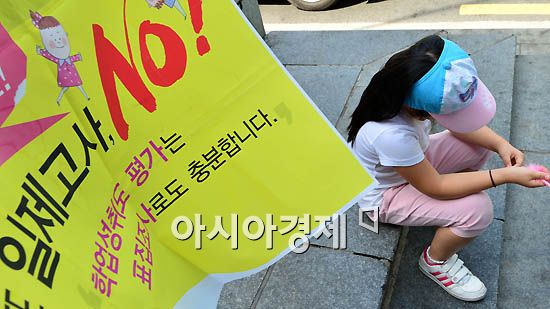 [아시아경제 양지웅 기자]전국의 초등6·중학3·고등2학년 학생들을 대상으로 '국가수준 학업성취도 평가'(일제고사)가 치러진 26일 서울 종로구 안국역 인근에서 일제고사반대시민모임이 주최하는 일제고사 반대 체험학습이 실시된 가운데 한 아이가 계단에 앉아 있다. 양지웅 기자 yangdoo@<ⓒ세계를 보는 창 경제를 보는 눈, 아시아경제(www.asiae.co.kr) 무단전재 배포금지>