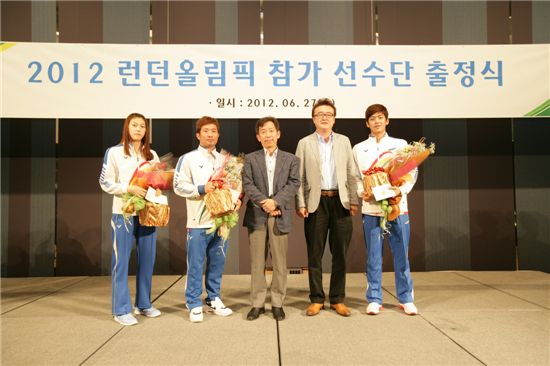 최치준 삼성전기 사장이 런던 올림픽에 출전하는 배드민턴 선수단과 출정식을 가졌다.