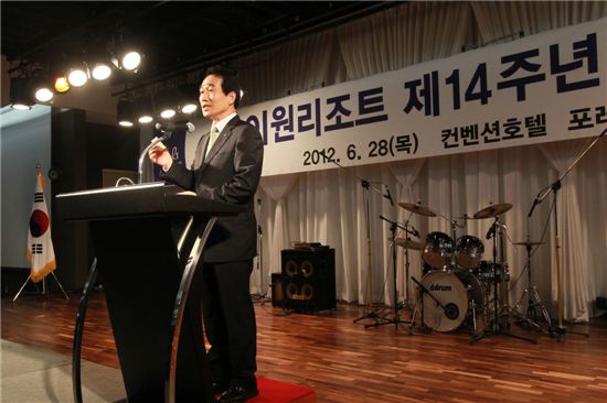 ▲최흥집 강원랜드 대표는 28일 강원랜드 컨벤션호텔에서 창립 14주년 기념식을 갖고 변화와 혁신, 대외이미지 개선 등을 강조했다.