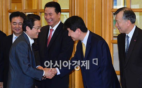 [아시아경제 양지웅 기자] 권혁세 금융감독원장이 29일 서울 중구 은행연합회에서 보험사 CEO들과 만나 악수를 나누고 있다. 양지웅 기자 yangdoo@<ⓒ세계를 보는 창 경제를 보는 눈, 아시아경제(www.asiae.co.kr) 무단전재 배포금지>