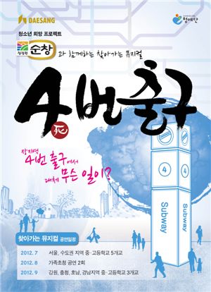 [아시아경제 이광호 기자]대상 청정원 순창과 청소년폭력예방재단은 오는 7월부터 9월까지 문화예술을 활용한 학교폭력 예방 프로젝트 '뮤지컬 4(死)번 출구' 공연을 진행한다고 29일 밝혔다.대상 청정원 순창이 후원하고 청예단이 주관하며, 청소년뮤지컬 전문극단 이룸씨어터가 공연을 맡은 뮤지컬 4번 출구는 청소년들이 나의 존재가치, 친구의 소중함, 가족의 소중함 등을 느끼며 청소년 스스로 고민을 치유해 갈 수 있도록 동기를 주는 '힐링 뮤지컬'이다. 옴니버스 형식의 다섯 가지 에피소드 형태로 구성되며, 최근 심각한 사회문제로 떠오르고 있는 학교폭력을 비롯한 청소년문제를 청소년 스스로 즐겁고 유쾌하게 풀어가는 스토리로 전개된다. 공연 중 아크로바틱 등 다양한 볼거리가 제공되며, 청소년들이 보내준 사연은 뮤지컬의 한 에피소드가 되어 청소년이 직접 역할극에 참여하고 관객과의 대화를 통해 다양한 형태의 청소년문제 해결을 위한 접근을 시도한다. 오는 7월2일 오후 4시 대학로 창조아트센터에서의 시연 공연을 시작으로 9월까지 전국 중·고등학교로 직접 찾아가 뮤지컬 공연 8회, 가족 초청 공연 2회 등 총 11회의 공연을 진행할 예정이다. 안영후 대상 순창 장류 담당 그룹장은 "이번 뮤지컬 공연은 대상 청정원 순창이 추진하고 있는 사회공헌 경영의 일환으로 기획됐다"며 "소비자들과 학교폭력예방이라는 공통의 가치를 지속적으로 공유하고 착한 소비를 유도해 냄으로써 기업의 사회적 책임을 완수하고 학교폭력 근절에도 기여할 것"이라고 말했다. 이광호 기자 kwang@<ⓒ세계를 보는 창 경제를 보는 눈, 아시아경제(www.asiae.co.kr) 무단전재 배포금지>