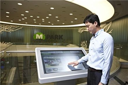 [아시아경제 이승종 기자] 2일 인천 가좌동에 위치한 중고차 매매단지 엠파크. 7층에 위치한 자동차 전시장에서 벤츠 뉴 S클래스를 이리저리 살피던 조우진(충북 음성ㆍ36)씨가 만족한 듯 고개를 끄덕였다. 조씨는 "검증된 중고차가 많다고 해서 일부러 지방에서 올라왔다"며 "한 번 둘러보니 오길 잘한 것 같다"고 말했다. 목자재 기업 동화홀딩스(회장 승명호)가 야심차게 시작한 중고차 사업이 시장에서 좋은 반응을 얻고 있다. 이 회사는 계열사 동화오토앤비즈를 통해 지난해 7월 인천 가좌동 부지에 중고차 매매단지를 만들었다. 기업의 미래 성장 동력을 자동차에서 찾겠다는 것이다. 사업은 1년 만에 정상 궤도에 진입했다는 평을 듣고 있다. 이날 찾은 엠파크는 평일임에도 불구하고 층마다 중고차를 찾는 방문객들로 가득했다. 최용택 동화오토앤비즈 수출팀장은 "입소문 덕분인지 개점 이후 방문객이 점점 늘고 있다"며 "현재 일평균 방문객이 500여명에 달한다"고 말했다. 보유 차량 수만 7000여대. 매월 1만5000여명이 엠파크를 방문해 중고차 3500여대를 구입해 간다. 한 달 만에 엠파크 내 중고차 절반가량이 바뀌는 셈이다. 그만큼 소비자 반응이 좋고 차량 회전율이 높다. 동화가 엠파크를 설립하며 가장 주안점을 둔 부분은 기존 중고차 매매단지와의 차별성이다. 서울 외곽에 위치하면서도 소비자를 끌려면 엠파크 만의 강점이 필요했다. 엠파크가 백화점과 매매단지를 결합한 하이브리드 형태를 띤 것도 그래서다. 보다 깨끗하고 체계적인 중고차 장터를 만들어보자는 의도다.2일 인천 엠파크에서 한 방문객이 키오스크를 이용해 중고차 정보를 검색하고 있다.