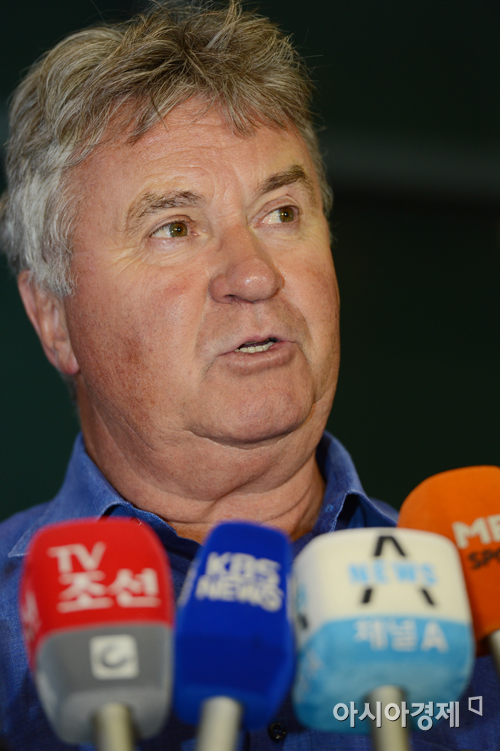 [인천=아시아경제 정재훈 기자] '하나은행 K리그 올스타전 2012'에서 TEAM 2002의 지휘봉을 잡게 된 히딩크 감독이 3일 오전 인천국제공항을 통해 입국했다. 입국장에서 취재진과 인터뷰하는 히딩크 감독.정재훈 사진기자 roze@<ⓒ세계를 보는 창 경제를 보는 눈, 아시아경제(www.asiae.co.kr) 무단전재 배포금지>