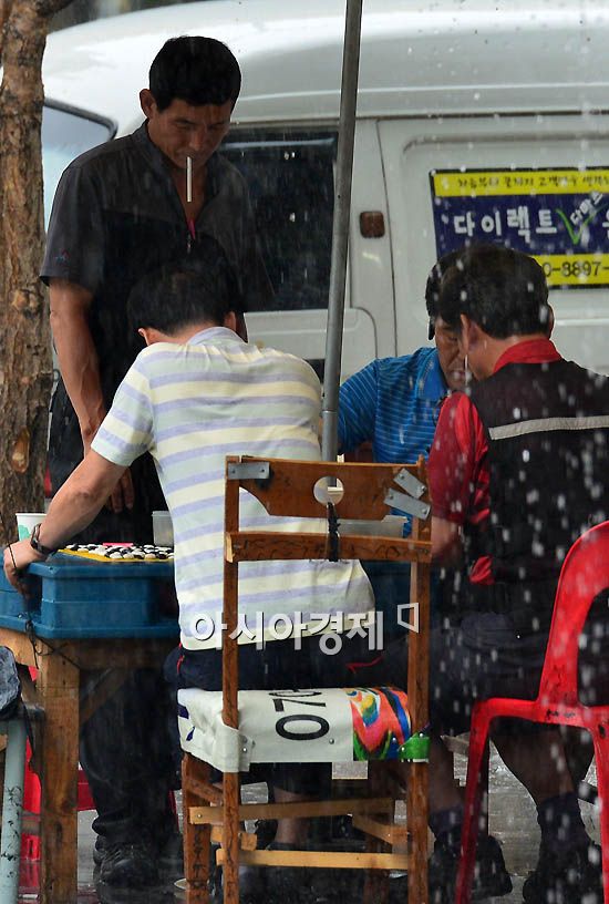 [아시아경제 양지웅 기자] 3일 오후 중부 지방에 천둥ㆍ번개 동반한 소나기가 내리는 가운데 서울 명보사거리 인근에서 시민들이 바둑을 두고 있다. 양지웅 기자 yangdoo@<ⓒ세계를 보는 창 경제를 보는 눈, 아시아경제(www.asiae.co.kr) 무단전재 배포금지>