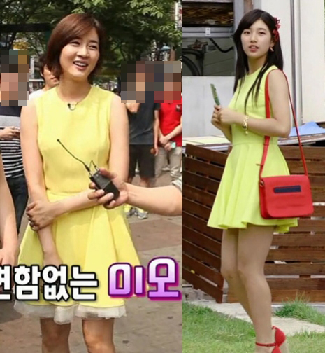 [아시아경제 온라인이슈팀] 배우 성유리(30)와 수지(18)가 같은 옷을 입은 모습이 포착돼 네티즌들의 눈길을 끌고 있다.최근 한 온라인 커뮤니티 게시판에는 똑같은 디자인의 레몬색 원피스를 입은 성유리와 수지의 사진이 올라왔다. 흰색의 샤스커트를 레이어드한 성유리가 여성스러운 매력을 뽐낸 것과 달리 수지는 레드백으로 포인트를 줘 한결 발랄하고 상큼한 매력을 어필하고 있다. 특히 10살이 넘는 나이차이가 무색할 정도로 각자의 아름다움을 잘 살려낸 모습이다.'성유리 수지 같은 옷' 사진을 접한 네티즌들은 "우열을 가리기가 힘들어", "수지가 귀엽다", "성유리가 자연스럽게 소화했다" 등 다양한 반응을 보였다. 온라인이슈팀 <ⓒ세계를 보는 창 경제를 보는 눈, 아시아경제(www.asiae.co.kr) 무단전재 배포금지>