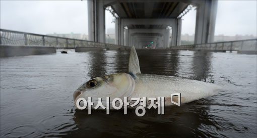 [아시아경제 윤동주 기자] 서울 강수량이 154mm를 기록하는 등 중부 지방에 폭우가 내린 6일 차량이 통제된 잠수교 위로 숭어 한마리가 올라와 있다.윤동주 기자 doso7@<ⓒ세계를 보는 창 경제를 보는 눈, 아시아경제(www.asiae.co.kr) 무단전재 배포금지>