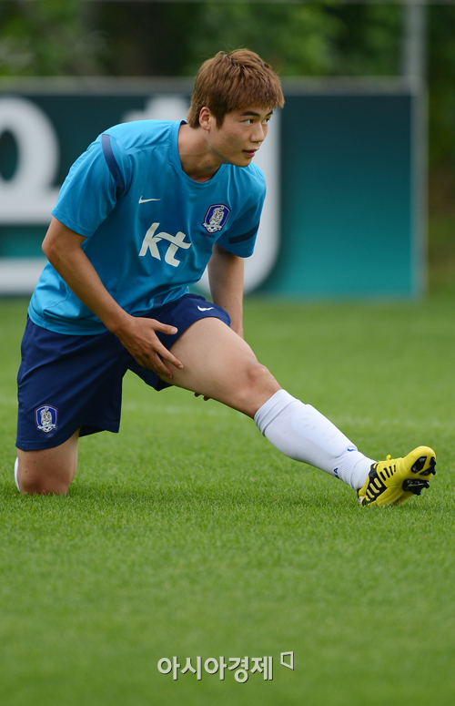 [파주=아시아경제 정재훈 기자] 2012 런던 올림픽을 앞둔 올림픽 축구 대표팀이 6일 오후 파주NFC에서 훈련을 가졌다. 스트레칭하는 기성용.정재훈 사진기자 roze@<ⓒ세계를 보는 창 경제를 보는 눈, 아시아경제(www.asiae.co.kr) 무단전재 배포금지>