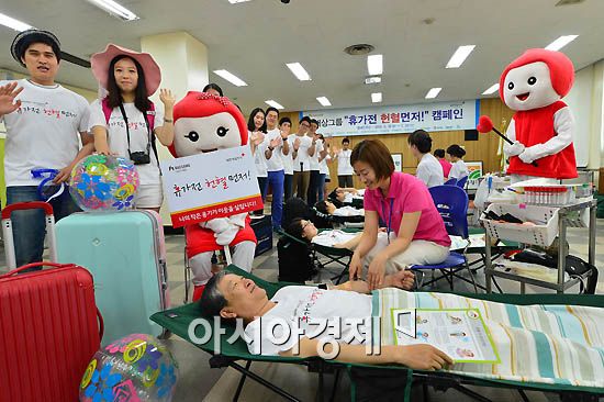 [아시아경제 양지웅 기자] 대상그룹이 10일 서울 신설동 사옥에서 한국적십자사와 함께 '휴가 전 헌혈 먼저 캠페인'을 진행한 가운데 명형섭 사장과 임직원들이 헌혈을 실시하고 있다.양지웅 기자 yangdoo@<ⓒ세계를 보는 창 경제를 보는 눈, 아시아경제(www.asiae.co.kr) 무단전재 배포금지>