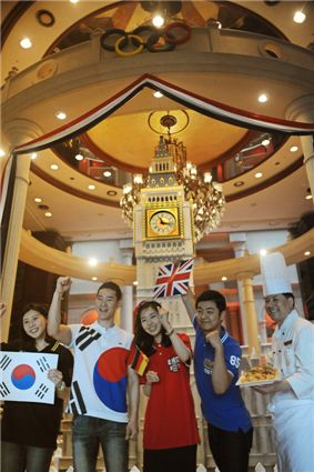 [아시아경제 오주연 기자] 임피리얼 팰리스 서울은 2012 런던 올림픽을 맞아 호텔 로비 라운지 중앙에 런던을 대표하는 상징물 '빅벤(Big Ben)'을 설치했다고 10일 밝혔다. 임피리얼 팰리스 서울은 런던의 상징물인 시계탑 빅밴을 호텔 로비에 6m 크기로 설치, 런던의 풍취를 물씬 느낄 수 있도록 했다. 여기에 각 나라별로 국기를 꽂아놓고 포토존까지 설치해 런던에서 펼쳐지는 올림픽 분위기를 호텔에서도 즐길 수 있도록 꾸몄다.임피리얼 팰리스 서울은 이번 올림픽 기간 동안 대한민국 국가대표팀의 선전을 기원하며 레스토랑과 바에서 피시앤칩스 등의 음식을 판매하고 선수와 같은 이름의 고객에게 뷔페를 무료로 제공하는 등의 이색적인 프로모션을 진행할 예정이다. 문의 02-3440-8000오주연 기자 moon170@<ⓒ세계를 보는 창 경제를 보는 눈, 아시아경제(www.asiae.co.kr) 무단전재 배포금지>