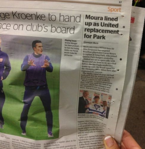 ▲박지성의 QPR 입단을 보도한 현지 신문. 배두나는 지난 11일 이 사진을 찍어 자신의 미니홈피에 올렸다.(출처: 배두나 미니홈피)