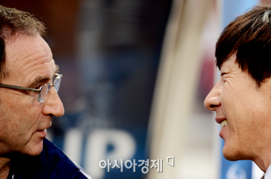 [수원=아시아경제 정재훈 기자] 성남 일화가 19일 오후 수원월드컵경기장에서 열린 '2012 피스컵 수원' 선덜랜드와의 경기에서 에벨톤의 결승골로 1:0 승리를 거두며 결승에 진출했다. 경기에 앞서 마틴 오닐 감독과 신태용 감독이 악수를 나누고 있다.정재훈 사진기자 roze@<ⓒ세계를 보는 창 경제를 보는 눈, 아시아경제(www.asiae.co.kr) 무단전재 배포금지>