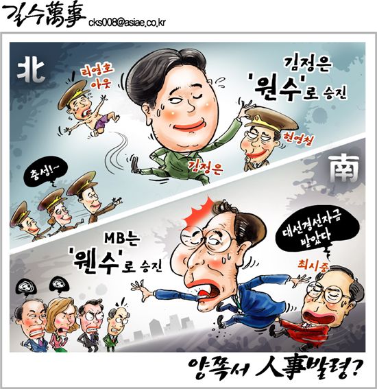 [아경만평]김정은 '원수' 승진…MB는 '웬수' 승진?