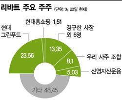 [아시아경제 이지은 기자]"합병 수준을 밟아가고 있다는 신호 아닐까요?""앞으로 시너지 더 키워가겠다는 의미이고, 확대 해석은 이른 것 같습니다." 가구업체 리바트의 1대주주 현대그린푸드가 8개월만에 장내에서 리바트 지분을 늘린 것을 두고 가구업계의 관측이 분분하다. 현대백화점이 합병을 염두에 두고 포석을 놨다는 의견부터 주가 하락에 따른 단순 지분매입이라는 의견까지 다양하게 나오고 있다. 20일 금융감독원에 따르면 현대그린푸드는 지난 9일~13일까지 5일간 장내에서 리바트 주식 8만3780주를 사들여 주식수를 398만주에서 406만주로 늘렸다. 지난해 11월 단번에 227만주를 사들이며 1대주주로 올라선 지 8개월만에 지분 보유량을 다시 늘린 것. 이에 대해 업계에서는 현대백화점이 합병을 대비, 본격적으로 움직이기 시작한 것 아니냐는 반응이다. 현대그린푸드는 현대백화점이 100%를 보유한 현대쇼핑이 7.76% 지분을 보유한 계열사다. 경규한 리바트 대표 역시 지난 4일 기자간담회에서 "당장 계획은 없지만 (합병 수순이)순차적으로 진행되지 않겠느냐"고 말한 바 있다. 한 가구업계 임원은 "합병 신호로 충분히 볼 수 있다"며 "리바트가 사실상 지난해 11월 현대 계열사로 편입됐음에도 8개월 간 이렇다 할 시너지 효과가 나오지 않은 데 대한 해법으로 해석된다"고 말했다. 현재 리바트는 자회사 아이디스트를 통해 현대백화점 인테리어 작업을 지원하고 있으며, 현대백화점에 매장 입점을 늘리고 있다. 하지만 이는 당초 업계가 기대하던 수준에 비해서는 '알맹이'가 없는 것. 증권가에서는 이번 지분 매입을 시너지 확대를 위한 포석으로 보고 있지만 연내 당장 진행할 가능성은 적다는 분석이다. '계열사 밀어주기'에 대한 부정적인 사회 분위기를 고려할 때 현대측이 무리하게 밀어붙이지는 않을 것이라는 설명이다. 신근호 IBK투자증권 애널리스트는 "본격적 시너지 확대는 올해 말이나 내년을 목표로 할 것"이라며 "계열사 밀어주기에 대한 인식이 좋지 않아 급하게 할 것 같지는 않다"고 말했다. 리바트 관계자는 이에 대해 "지분 매입 규모가 너무 작아 큰 의미가 없다"고 일축했다. 이 관계자는 "지난해까지만 해도 퍼시스가 적대적 인수합병을 검토하는 상황이어서 현대그린푸드의 지분 매입이 의미가 있었다"며 "하지만 퍼시스로부터 현대가 지분을 넘겨받은 현재는 경쟁상대가 없으니 확대해석은 금물"이라고 말했다. 현대백화점 역시 "최근 주가하락을 방어하기 위해 주식을 일부 매입했다"며 "이는 이미 리바트 경영진에게도 통보가 된 만큼 별다른 의미는 없다"고 말했다. 이지은 기자 leezn@<ⓒ세계를 보는 창 경제를 보는 눈, 아시아경제(www.asiae.co.kr) 무단전재 배포금지>