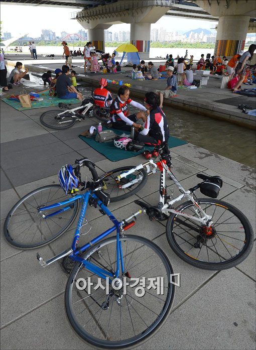 [아시아경제 윤동주 기자] 전국 대부분 지역에 폭염특보가 내려진 24일 서울 여의도 마포대교 남단을 찾은 시민들이 시원한 강바람을 쐬며 더위를 피하고 있다.윤동주 기자 doso7@<ⓒ세계를 보는 창 경제를 보는 눈, 아시아경제(www.asiae.co.kr) 무단전재 배포금지>
