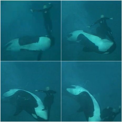 ▲ 카샷카란 이름의 범고래는 조련사 캔 피터스의 발목을 물고 물속을 끌고 다녔다(출처: 유튜브 동영상 캡처)
