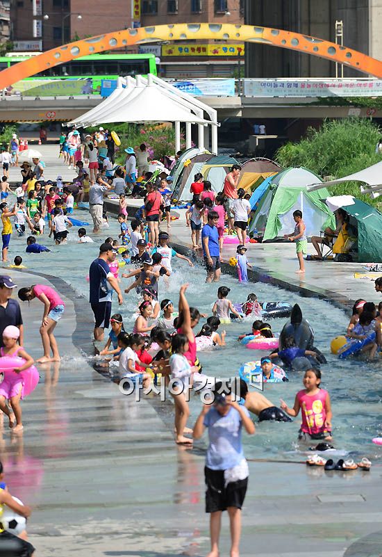 [아시아경제 양지웅 기자] 중부지방에 섭씨 30도가 넘는 무더위가 이어지는 27일 서울 송파구 성내천 물놀이장을 찾은 어린이들이 물장난을 치며 더위를 식히고 있다. 양지웅 기자 yangdoo@<ⓒ세계를 보는 창 경제를 보는 눈, 아시아경제(www.asiae.co.kr) 무단전재 배포금지>
