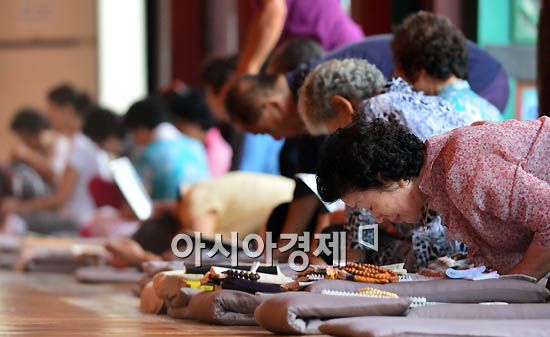 [아시아경제 양지웅 기자] 2013학년도 대입수능을 100일 앞둔 31일 서울 종로구 조계사를 찾은 불자들이 자녀들의 합격을 기원하는 기도를 하고 있다.양지웅 기자 yangdoo@<ⓒ세계를 보는 창 경제를 보는 눈, 아시아경제(www.asiae.co.kr) 무단전재 배포금지>
