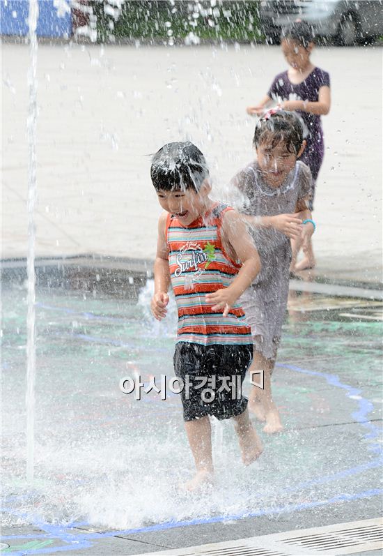 [아시아경제 정재훈 기자] 찌는 듯한 더위가 계속되는 가운데 31일 오후 종로구 신문로 서울역사박물관 앞 분수광장에서 한 어린이가 물놀이를 즐기고 있다.정재훈 사진기자 roze@<ⓒ세계를 보는 창 경제를 보는 눈, 아시아경제(www.asiae.co.kr) 무단전재 배포금지>