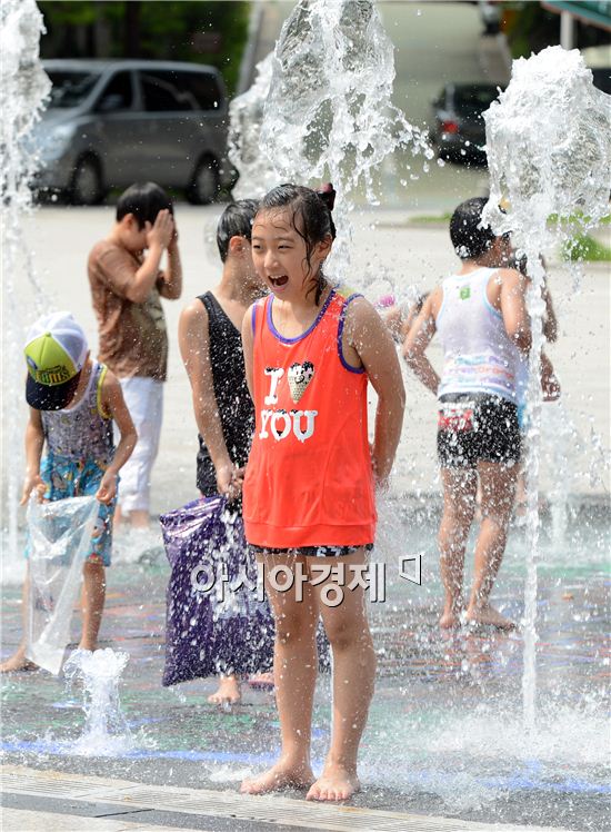 [아시아경제 정재훈 기자] 찌는 듯한 더위가 계속되는 가운데 31일 오후 종로구 신문로 서울역사박물관 앞 분수광장에서 한 어린이가 물놀이를 즐기고 있다.정재훈 사진기자 roze@<ⓒ세계를 보는 창 경제를 보는 눈, 아시아경제(www.asiae.co.kr) 무단전재 배포금지>