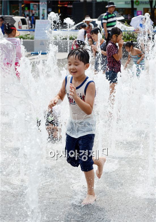 [아시아경제 정재훈 기자] 찌는 듯한 더위가 계속되는 가운데 31일 오후 종로구 광화문광장 분수에서 더위를 식히는 어린이들.정재훈 사진기자 roze@<ⓒ세계를 보는 창 경제를 보는 눈, 아시아경제(www.asiae.co.kr) 무단전재 배포금지>