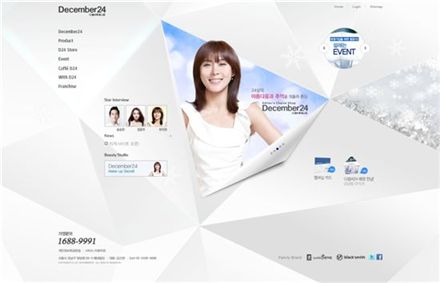 [아시아경제 오주연 기자] 카페베네의 세 번째 브랜드, 뷰티&헬스 스토어 ‘디셈버투애니포(December24)’가 공식 홈페이지(www.december24.co.kr)를 개설했다.카페베네는 디셈버투애니포 홈페이지를 통해 회원가입을 한 고객 중 100명을 추첨해 2만원 상당의 ‘설레임 박스’를 증정한다고 3일 밝혔다.이번 이벤트는 오는 12일까지 진행되는 행사로 회원가입을 한 고객들은 자동으로 응모되며 상품은 디셈버투애니포 강남역점 매장에서 수령할 수 있다.디셈버투애니포 홈페이지에서는 뷰티케어용품과 생활용품 등 매장에 입점된 제품을 미리 만나 볼 수 있고, 각종 이벤트와 고객이 참여할 수 있는 랭킹존 서비스 등을 접할 수 있다. 디셈버투애니포는 이번 홈페이지 개장과 함께 디셈버투애니포의 전속 모델 배우 송승헌, 하지원, 장윤주씨를 공개했다.디셈버투애니포 관계자는 “유통시장에 새로운 바람을 일으킬 새로운 브랜드 론칭을 앞두고 공식 홈페이지를 본격 운영하게 됐다”며 “고객과의 소통 창구로 적극적으로 활용하며 온라인상의 또 하나의 감성공간으로 자리매김 할 것”이라고 전했다. 디셈버투애니포 1호 매장인 강남역점은 8월 8일 개장할 예정이다. 오주연 기자 moon170@<ⓒ세계를 보는 창 경제를 보는 눈, 아시아경제(www.asiae.co.kr) 무단전재 배포금지>