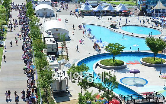 [아시아경제 양지웅 기자] 전국 대부분 지방에 폭염이 이어지고 있는 3일 서울 뚝섬한강공원 수영장 주변이 입장을 기다리는 시민들로 장사진을 이루고 있다.양지웅 기자 yangdoo@<ⓒ세계를 보는 창 경제를 보는 눈, 아시아경제(www.asiae.co.kr) 무단전재 배포금지>