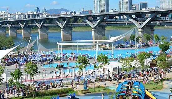 [아시아경제 양지웅 기자] 전국 대부분 지방에 폭염이 이어지고 있는 3일 서울 뚝섬한강공원 수영장 주변이 입장을 기다리는 시민들로 장사진을 이루고 있다.양지웅 기자 yangdoo@<ⓒ세계를 보는 창 경제를 보는 눈, 아시아경제(www.asiae.co.kr) 무단전재 배포금지>
