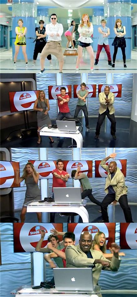 [아시아경제 온라인이슈팀] 가수 싸이(35)의 신곡 '강남스타일'이 CNN 등 미국 주요언론에 소개된데 이어 현지 아침방송까지 진출해 화제다. 지난 1일(현지시각) 미국 아침방송 '아이오프너 TV'(Eye Opener TV)의 '쉐어 디스'(Share this) 코너에선 싸이의 '강남스타일' 뮤직비디오가 소개됐다. 진행자 올리버 툴은 "유튜브에서 엄청난 인기를 끌고 있는 한국 가수 싸이의 뮤직비디오"라며 간략한 소개말을 곁들였다.뮤직비디오 자료 화면이 나간 후에는 툴을 포함한 4명의 출연자들이 '강남스타일' 음악에 맞춰 말동작을 응용한 '이랴이랴춤'을 흥겹게 따라했다.올리버 툴은 "'오빤 강남스타일'이란 말이 무슨 뜻인진 모르겠지만, 곡이 너무 신난다"고 감탄했다. 방송후에는 트위터에 "'강남스타일'은 폭탄같은 곡이다. 만약 모른다면 아는 사람에게 물어봐라"라는 트윗을 올리기도 했다.앞서 '강남스타일'은 미국 방송 CNN, 온라인 매체 허핑턴포스트 등에서도 보도된 바 있다. '강남스타일'은 가수 싸이의 6집 타이틀곡으로 지난달 15일 공개된 이후 유튜브 음악 카테고리 한국 차트에서 1위를 차지하는 등 선풍적인 인기를 끌었다. 뮤직비디오를 흉내낸 '기숙사스타일', '대구스타일', '오만스타일' 등 각종 패러디 영상도 쏟아지고 있다.