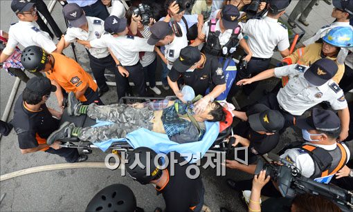 [포토]현대미술관 공사 현장 화재, 구조되는 공사 근로자