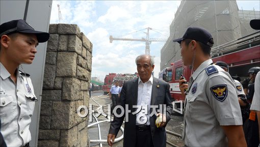 [아시아경제 윤동주 기자] 최광식 문화부 장관이 13일 서울 종로구 경복궁 근처 현대미술관 신축 공사현장에서 발생한 화재 현장을 둘러본 후 고개를 떨군 채 현장을 빠져나오고 있다.윤동주 기자 doso7@<ⓒ세계를 보는 창 경제를 보는 눈, 아시아경제(www.asiae.co.kr) 무단전재 배포금지>