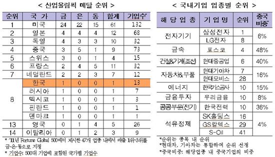 전경련, '포춘 글로벌 500' 47개 업종 분석 결과 삼성전자만 전자업종 1위로 금메달