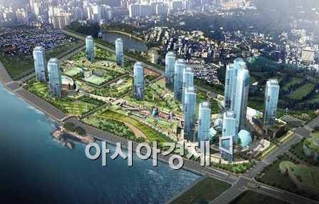 옛 '대우자동차판매(주)'가 과거 대우그룹 본사 대신 개발하기로 한 송도 유원지 일대 도시개발구역 조감도. /자료제공='대우자동차판매(주)'