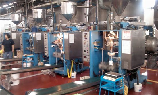 ▲ 수성접착제 205가 자동포장기에서 나오고 있는 모습
