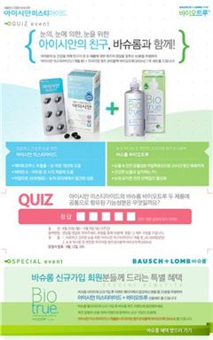 [아시아경제 이현주 기자] CJ제일제당의 브랜드 '아이시안'은 내달 9일까지 글로벌 콘텍트렌즈 생산 전문업체 '바슈롬'과 환절기 건강한 눈을 위한 이벤트를 진행한다고 21일 밝혔다.이번 이벤트는 아이시안 홈페이지에 접속해 건강기능식품 '아이시안 미스티아이드'와 렌즈 관리 용액 '바슈롬 바이오트루'에 공동으로 들어가는 성분을 작성하면 참여할 수 있다. 추첨을 통해 정답을 맞힌 50명에게 아이시안 미스티아이드 1개월 분, 바슈롬 바이오트루를 각각 1개씩 제공한다.아이시안은 이와 동시에 다양한 프로모션 등을 통해 눈 건강 캠페인에 주력하고 있다.대표적으로 CJ엔투스 프로게이머 협찬을 통해 장시간 PC 사용시 눈관리가 중요하다는 것을 간접적으로 알리고 있다. 앞으로는 다비치안경, 룩옵티컬 등 안경전문점 및 유명 안과 등과 제휴해 소비자들을 적극 공략할 계획이다.김송수 CJ제일제당 아이시안 브랜드 부장은 "스마트폰, PC사용이 일상화 되면서 눈 건강에 대한 소비자 관심이 증가하고 있기에 눈에 대한 다양한 솔루션을 제공하는 '아이시안' 브랜드의 성장 가능성이 크다"며 "바슈롬과의 제휴 이벤트를 시작으로 다양한 프로모션과 건강강좌 등으로 아이시안을 눈 건강 전문 브랜드로 안착시킬 것"이라고 말했다.이현주 기자 ecolhj@<ⓒ세계를 보는 창 경제를 보는 눈, 아시아경제(www.asiae.co.kr) 무단전재 배포금지>