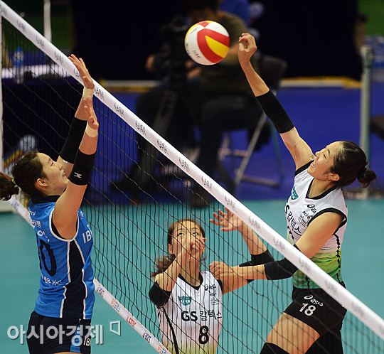 [수원=아시아경제 정재훈 기자] 21일 오후 수원실내체육관에서 열린 '2012 수원컵 프로배구대회' 여자부 GS칼텍스와 IBK기업은행의 경기에서 최유정이 스파이크를 때리고 있다.정재훈 기자 roze@<ⓒ세계를 보는 창 경제를 보는 눈, 아시아경제(www.asiae.co.kr) 무단전재 배포금지>정재훈 사진기자 roze@<ⓒ아시아 대표 석간 '아시아경제' (www.newsva.co.kr) 무단전재 배포금지>