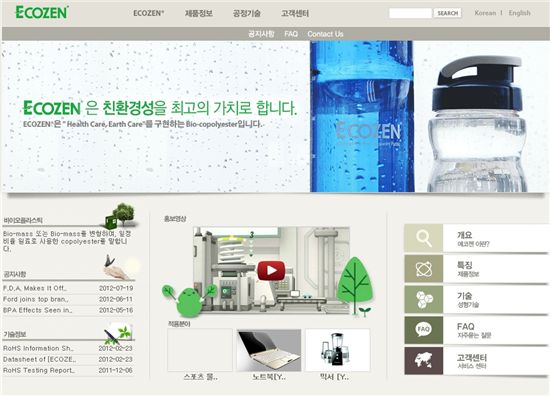 SK케미칼이 친환경 소재 에코젠의 브랜드 사이트를 오픈했다. 사진은 사이트 메인 화면.