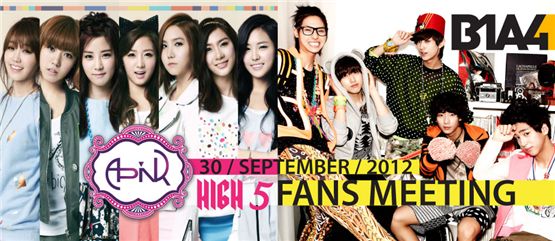 K-pop boy band B1A4 and girl group A PINK are teaming up next month to open a joint concert in Malaysia, according to the promoter Jazzy Group's website Wednesday. The two team are to perform at their concert dubbed "THE ONE" at The Butter Factory in Kuala Lumpur, Malaysia on September 29. The statement on the website also showed the popular K-pop acts will meet and greet their fans at a high-five session scheduled to be held in the same venue the following day. Composed of Jinyoung, Baro, Sandeul, CNU and Gongchan, B1A4 [Be the One, All for One] is currently starring in the sixth season of KBS Joy TV's reality show "Hello Baby." Having gained much love and attention through "Baby Good Night," the boys are awaiting the release of their second Japanese single as well. In the meantime, A PINK broke into the K-pop music scene with the debut record "Seven Springs of A PINK" in April, 2011. The girls followed it up with the first studio album titled "UNE ANNEE" in May and recently released their new single "BUBIBU." ※ Any copying, republication or redistribution of 10Asia's content is expressly prohibited without prior consent of 10Asia. Copyright infringement is subject to criminal and civil penalties.10 아시아 Reporter : Lucia Hong luciahong@10 아시아 Editor : Monica Suk monicasuk@<ⓒ즐거움의 공장 "10 아시아" (10.asiae.co.kr) 무단전재 배포금지>