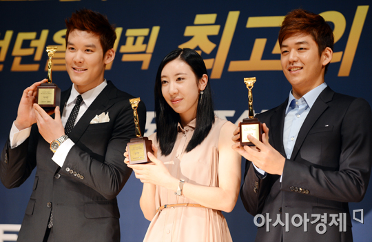 [아시아경제 정재훈 기자] 23일 오전 서울 종로구 올레스퀘어에서 열린 '2012 런던올림픽 최고의 선수 어워드'에서 수상한 박태환, 신아람, 이용대가 포즈를 취하고 있다.정재훈 기자 roze@<ⓒ세계를 보는 창 경제를 보는 눈, 아시아경제(www.asiae.co.kr) 무단전재 배포금지>