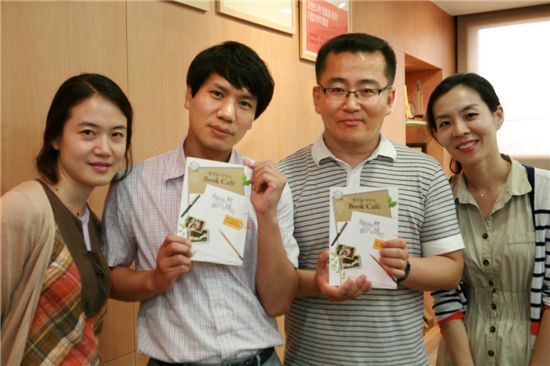 ◆직원 평가시 독서활동도 인정= 주니어보드의 멤버 8명은 매달 정기적으로 모여 독서경영의 아이디어를 나눈다. 또 새로운 계획을 세우고 활동상황을 공유하며 점검한다. 임원진의 결정이 상명하달식으로 내려오는 대신 각 부문별로 대표성을 띠는 젊은 직원들이 모여서 독서경영 활동을 주도적으로 추진하는 것이다. 주니어보드에서 내놓은 계획은 인사팀과 1차 협의를 거친 다음, 바로 부문장이나 사장에게 보고된다. 연구생산SCM부문의 곽대환 과장은 "독서를 강요하기보다 자유롭게 활성화시키는 것이 주니어보드의 중요한 목표"라고 말했다. 마케팅부문의 김은수 대리도 "내가 하기 싫은 걸 다른 직원들한테 하자고 할 수 없으니 더욱 신중하게 판단하게 된다"며 "직원들이 거부감 없이 받아들일 수 있는 아이디어들이 나오는 것도 이 때문일 것"이라고 말했다. 현장에서 일하고 있는 실무자들이 머리를 맞대는 만큼 현장 상황을 고려한 정책이 나온다는 것도 장점이다. 관리부문의 박종수 대리는 "본사, 연구소, 공장 등으로 사업장이 분산돼 있고 각자 하는 일도 다르지만, 각 부문별로 1명씩 주니어보드에 참여해 의견을 모으다보니 부문별 특수성을 반영할 수 있다"며 "최대한 많은 직원들이 만족할 수 있는 방법을 찾기 위해서 노력 중"이라고 말했다. 2008년부터 주니어보드가 본격적으로 활동하기 시작하면서 애경의 독서경영도 틀이 잡혔다. 이에 사측은 주니어보드의 활동에 대해 전폭적인 지원을 아끼지 않았다. 애경에서는 2010년부터 전 직원이 모두 참여하는 '독서릴레이' 행사를 이어오고 있다. 조직의 가장 작은 단위인 파트별로 읽고 싶은 책을 선정해 함께 읽고 토론하는 독서포럼을 진행한다. 부문별ㆍ파트별로 돌아가면서 진행되다보니 한 직원이 1년에 2번 정도 참여해 부담도 적은 편이다. 주니어보드가 제안해 채택된 '역량 필독서' 제도는 올해부터 시작됐다. 직원들은 역량 강화를 위해 선정된 필독서 목록 중 3권 이상을 읽고 감상문을 내야 한다. 곽대환 과장은 "직원평가 시 역량평가항목에서 독서활동을 인정해주기 때문에 평가와도 간접적으로 연계시켰다"고 설명했다. 올해 하반기에는 '리딩으로 리드하라', '생각 버리기 연습', '프레임', '마음을 움직이는 승부사 제갈량' 등의 책이 필독서로 선정됐다.지난 6월 29일 애경 디자인센터 ED팀은 '왓칭'이라는 책으로 독서포럼을 진행했다. 애경은 각 부문별 파트단위로 독서릴레이를 진행하고 있다.