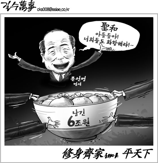 [아경만평]'아들들아! 너희들도 화합해라!'