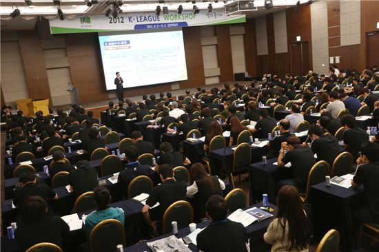 [아시아경제 김흥순 기자]한국프로축구연맹이 3일과 4일 이틀간 경북 문경시 STX 리조트에서 K리그 16구단 임직원 약 270명이 참석한 가운데 '소통과 변화, 도약을 위한 2012 K리그 워크숍'을 진행했다.이번 워크숍에서는 ▲소통을 통한 K리그의 변화와 도약 ▲부정 방지 교육 ▲프로축구 지역 커뮤니티 활동 우수 사례를 공유하고, 직군별로 ▲J리그의 현재와 미래 ▲토토 사업계획 및 정산 시스템 ▲타 프로스포츠 홍보 사례 ▲협상 전략 등을 토의했다.한편 현대오일뱅크 K리그 2012는 오는 15일부터 상위 1~8위의 '그룹A'와 9~16위의 '그룹B'로 나눠 스플릿 시스템에 돌입한다.김흥순 기자 sport@<ⓒ세계를 보는 창 경제를 보는 눈, 아시아경제(www.asiae.co.kr) 무단전재 배포금지>