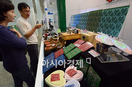 [아시아경제 정재훈 기자] 5일 서울 삼성동 코엑스에서 열린 13회 중소기업 기술혁신대전을 찾은 관람객이 LED를 이용한 전시품을 구경하고 있다.정재훈 기자 roze@<ⓒ세계를 보는 창 경제를 보는 눈, 아시아경제(www.asiae.co.kr) 무단전재 배포금지>