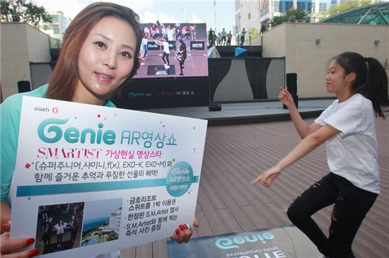 [아시아경제 김보경 기자] KT(회장 이석채)는 지난 8일 경기 안양시 롯데백화점 평촌점에서 스마트폰 전용 음악서비스 '지니(Genie)' 고객들을 대상으로 '지니 AR(Augmented Reality, 증강현실) 영상쇼' 행사를 개최했다. 지니 AR 영상쇼는 대형 LED 스크린 속의 증강현실을 통해 체험자가 마치 SM엔터테인먼트 소속 가수와 함께 춤을 추고 있는 듯한 특별한 경험을 제공한다. 이날 지니 AR 영상쇼 행사 참가자들은 SM 소속 가수들의 다양한 영상을 선택해 춤을 배우고 기념 사진을 촬영하는 등 흥미진진한 체험을 해볼 수 있는 기회를 가졌다. 한편 지니 AR 영상쇼는 오는 15일 롯데백화점 김포공항점, 22일 롯데백화점 본점에서 계속 진행될 예정이다. 스마트폰 전용 음악서비스 지니는 최대 3번까지 전곡 전체 듣기 지원, 매월 40곡 무료 다운로드, LTE WARP 지니팩을 통한 무제한 스트리밍 서비스(월정액 4000원)를 제공하고 있다. 김보경 기자 bkly477@<ⓒ세계를 보는 창 경제를 보는 눈, 아시아경제(www.asiae.co.kr) 무단전재 배포금지>