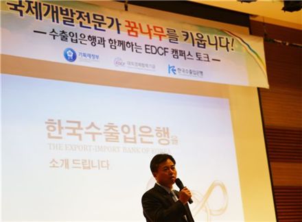 [아시아경제 임혜선 기자]"경부고속도로와 포항제철의 공통점이 무엇일까요? 둘 다 외국의 유상원조자금으로 지어졌습니다. 그렇다면, 대외경제 협력기금(EDCF)이 뭔지 아는 학생 있습니까?"사회자의 질문에 강의장을 가득 메운 학생들 가운데 몇몇이 손을 번쩍 들었다. "개발도상국의 경제발전과 경제협력관계를 증진하기 위해 정부 차원에서 공여하는 공적개발원조(ODA)자금의 하나입니다." 11일 서울 한양대학교 경영대 7층 SK홀 대강당에서 열린 수출입은행의 EDCF 캠퍼스 토크' 현장은 뜨거웠다. 수출입은행은 오는 11월 열리는 '제 1회 대학생 대상 국제개발 경시대회'에 앞서 대학생들에게 EDCF에 대해 알리고 공감대를 형성한다는 취지로 이같은 행사를 마련했다. '국제개발 경시대회'의 수상자에게는 상금과 함께 베트남을 방문할 수 있는 기회도 주어진다. 이날 토크에서 수출입은행은 EDCF의 특성 및 지원절차와 사례, 그리고 은행의 역할 등에 대해 설명했다. 가장 인기를 끈 세션은 실무진과의 대화 시간. EDCF에 대한 설명을 들은 학생들은 앞다퉈 궁금한 점을 질문했다. 한 대학생은 "북한에도 원조해야 하는 게 맞지 않나요?"라고 물어 수출입은행 관계자를 당황케 하기도 했다. 행사에 참여한 경제금융학부 4학년 김근호 학생은 "회계사에 합격했지만 '해외개발전문가로 일하고 싶다'는 마음이 있다"며 "수출입은행의 이번 행사를 통해 진로에 대해 그림을 그릴 수 있게 됐다"고 말했다. 수출입은행 심섭 부행장은 "우리나라가 어떤 나라에 어떤 원조를, 어떻게 주고 있 는지 자세히 알고 있는 사람이 생각보다 많지 않다"며 "젊은층들의 원조에 대한 인식 전환이 필요하다"고 말했다. 수출입은행은 오는 18일까지 서울대, 경희대, 부산대, 전남대 등에서 EDCF 현장홍보 행사를 진행한다.임혜선 기자 lhsro@<ⓒ세계를 보는 창 경제를 보는 눈, 아시아경제(www.asiae.co.kr) 무단전재 배포금지>