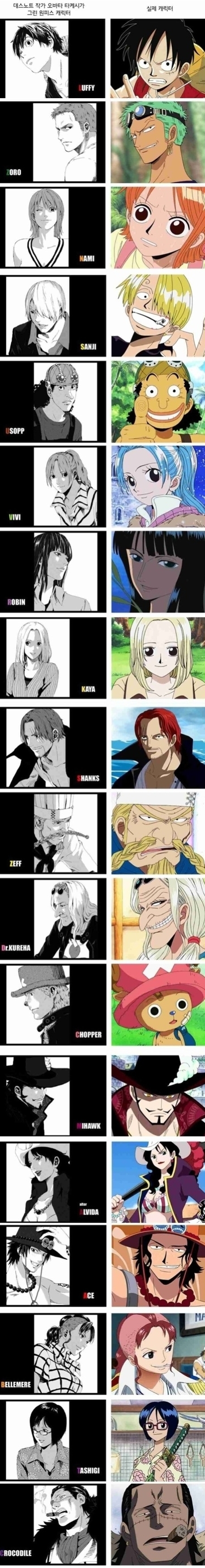 [아시아경제 박충훈 기자] 인기만화 '데스노트' 작가 오바타 타케시가 만화 '원피스'의 캐릭터를 자신만의 스타일로 재해석해 그린 그림이 화제다.최근 타케시가 그린 '데스노트'풍 캐릭터와 원작캐릭터를 비교한 게시물이 인터넷에서 인기를 끌고 있다. 데스노트풍 그림은 컬러풀하고 개성이 넘치는 원작 캐릭터에 비해 데스노트풍 원피스 캐릭터는 다소 현실적이고 음침한 느낌이다.원피스의 주인공 루피는 데스노트의 천재 캐릭터 엘(L)처럼 무표정한데다 동공이 강조돼 있어 다소 섬찟한 느낌이다. 코가 긴 허풍쟁이 '우솝'도 어딘가 우울한 분위기를 풍긴다. 순록 '쵸파'는 인간으로 변신했을 때 모습을 그려 귀여운 맛이 전혀 없다.네티즌은 "우솝이 잘 생겼다고 느껴진건 이번이 처음", "작은 쵸파가 귀여운데…" 등 영 어색하다는 반응이다.한편 만화가 오다 에이치로가 그린 '원피스'는 2억 5000만부의 단행본 발행부수를 기록하며 역대 일본 만화 중 1위를 차지하고 있다. 드래곤볼 작가 토리야마 아키라도 원피스의 팬임을 자처하는 등 전세계인의 사랑을 받는 만화다. 지난 달 발간된 원피스 단행본 67권의 경우 초판 발행부수 405만부를 달성해 종전 일본 기록을 갈아치웠다.