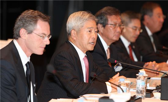 [아시아경제 임선태 기자]전국경제인연합회(회장 허창수)는 미국 상공회의소와 공동으로 14일 서울 그랜드하얏트호텔에서 현재현 동양그룹 회장(한국측 위원장), 폴 제이콥스 퀄컴 회장(미국측 위원장), 성 김 주한 미국대사, 최영진 주미 대사 등 50여명이 참석한 가운데 '제 24차 한미재계회의 총회'를 개최했다고 밝혔다.임선태 기자 neojwalker@<ⓒ세계를 보는 창 경제를 보는 눈, 아시아경제(www.asiae.co.kr) 무단전재 배포금지>