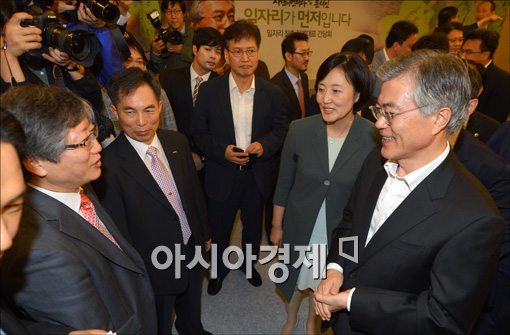 [아시아경제 윤동주 기자] 문재인 민주통합당 대통령 후보가 17일 서울 구로구디지털단지에서 열린 일자리 창출 각계대표 간담회에 참석해 다양한 분야의 참석자들 의견을 청취하고 있다. 윤동주 기자 doso7@<ⓒ세계를 보는 창 경제를 보는 눈, 아시아경제(www.asiae.co.kr) 무단전재 배포금지>